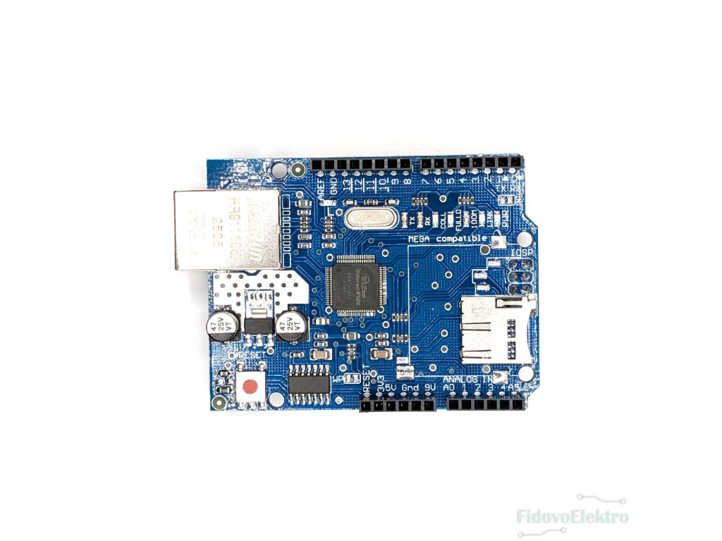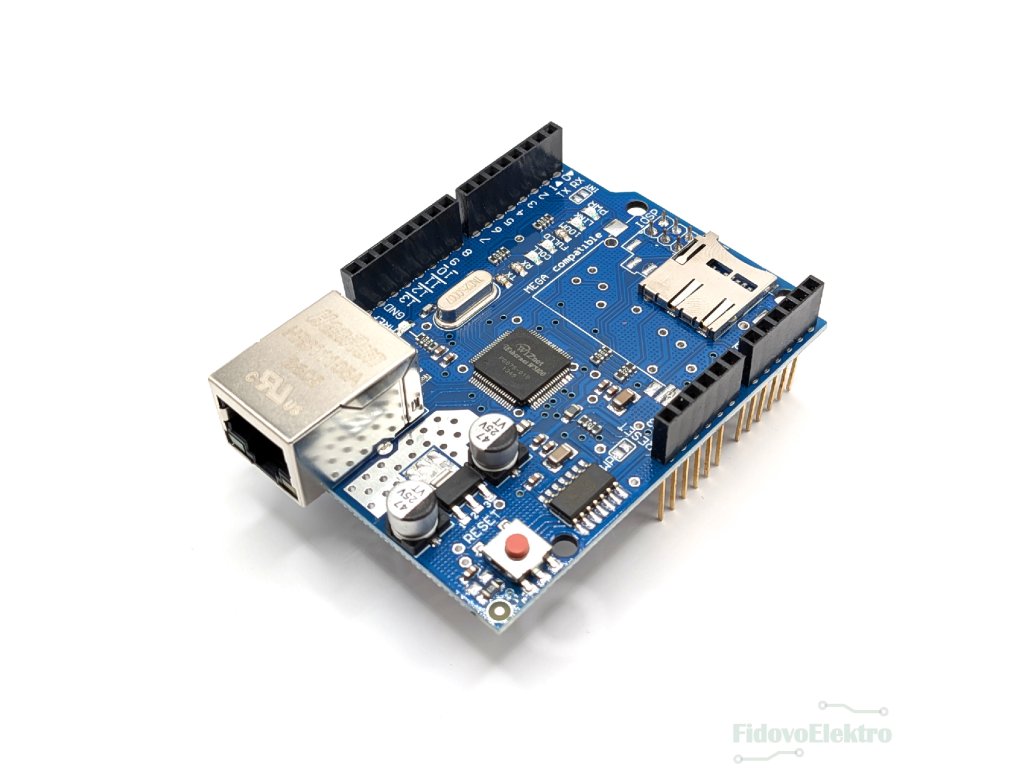 Ethernet shield umožňuje připojit Arduino desku k lokální síti nebo internetu pomocí kabelového Ethernetu. Je založen na síťovém čipu W5100 a komunikuje s Arduinem přes rozhraní SPI. Shield je vhodný pro tvorbu webových serverů, IoT projektů, vzdálené řízení zařízení nebo sběr dat po síti. Obsahuje slot pro micro-SD pro snadný zápis a čtení dat ze souboru. Díky standardnímu provedení je snadno nasaditelný a kompatibilní s Arduino Uno, Mega a dalšími.