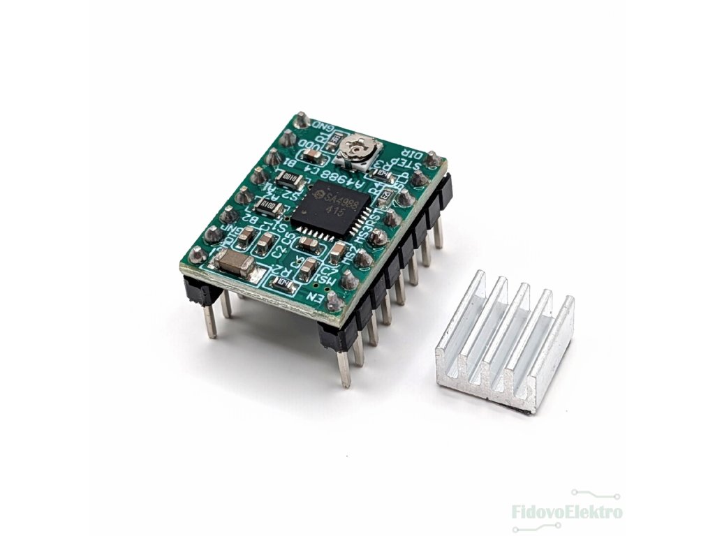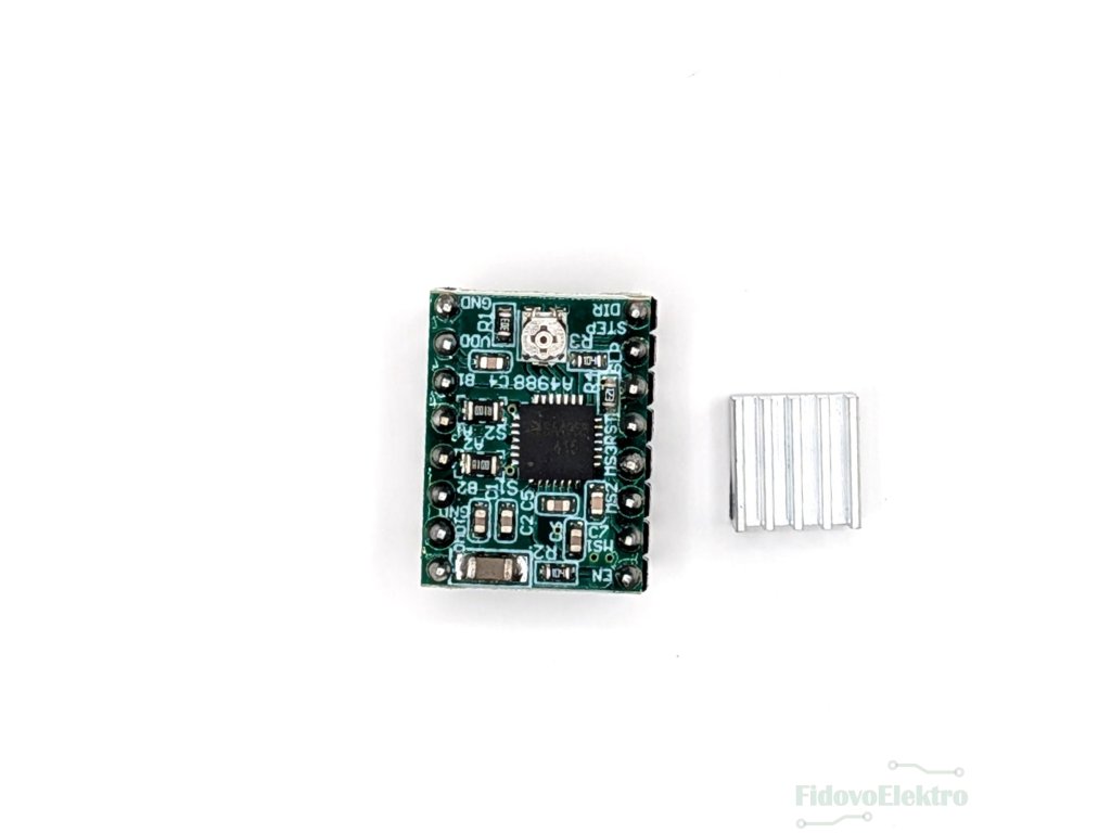 - Balení obsahuje: driver krokových motorů A4988, chladič
